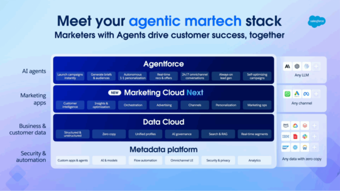 Unlike conventional tools that layer AI on top of existing workflows, Marketing Cloud Next embeds AI agents directly into the Salesforce platform, enabling what the company describes as fully autonomous operations. Marketers remain in control, but the agents can proactively manage outreach and execution across email, web, SMS and paid media channels.